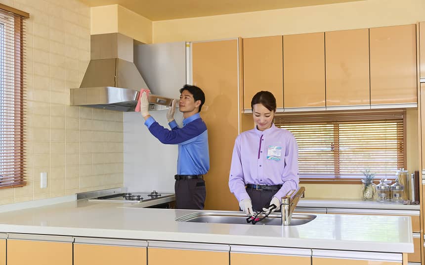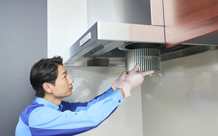 フィルターやファンなどのすみずみまでこびりついたしつこい油汚れも逃さず、 徹底的に分解洗浄してスッキリ。